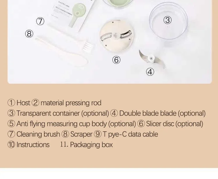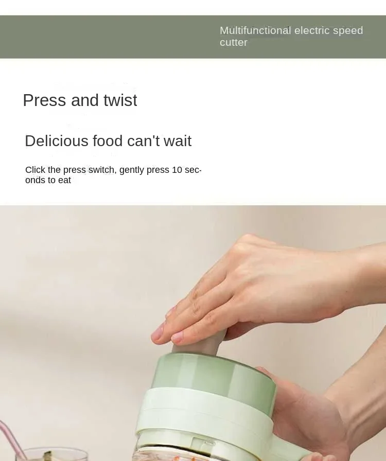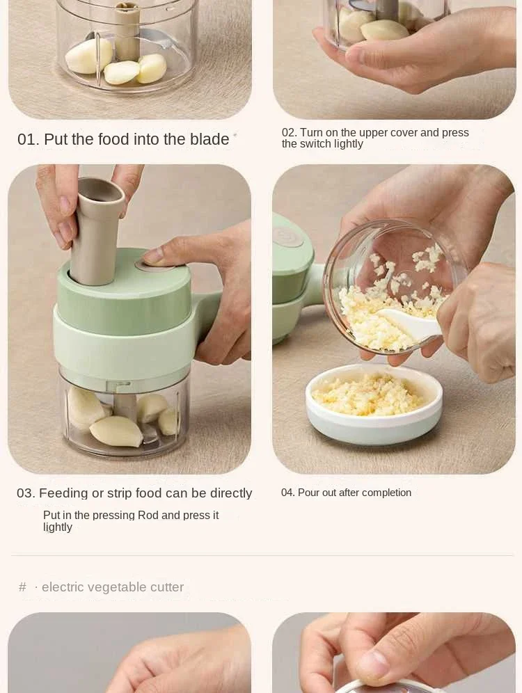 4 in 1 Handheld Electric Vegetable Cutter Set Kitchen Tools For Garlic Pepper Chili Onion Celery Ginger Meat With Brush